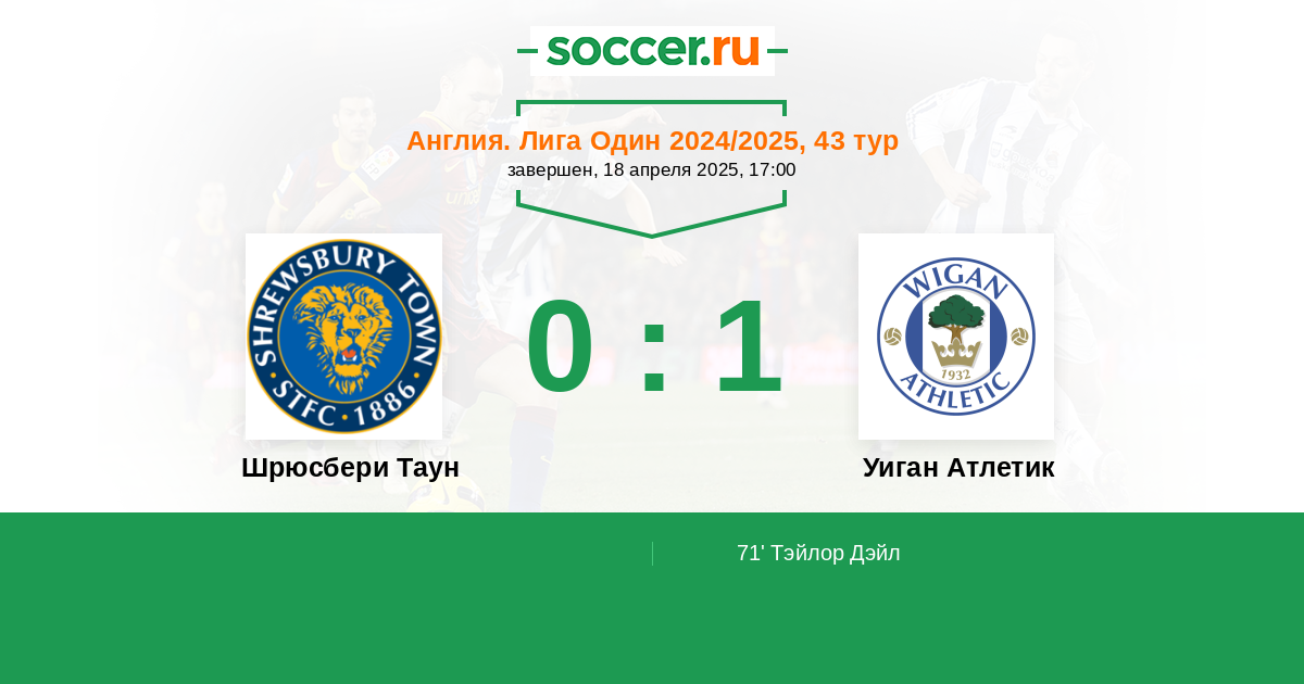 Протокол матча Шрюсбери Таун против Уиган Атлетик