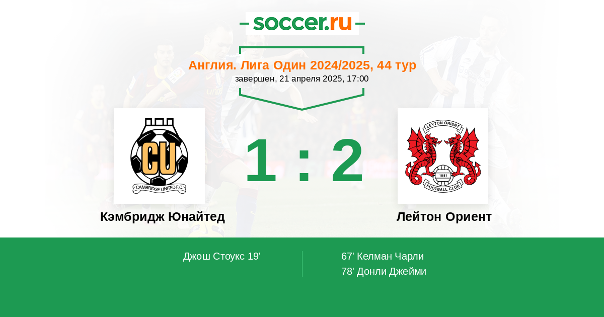Протокол матча Кэмбридж Юнайтед против Лейтон Ориент