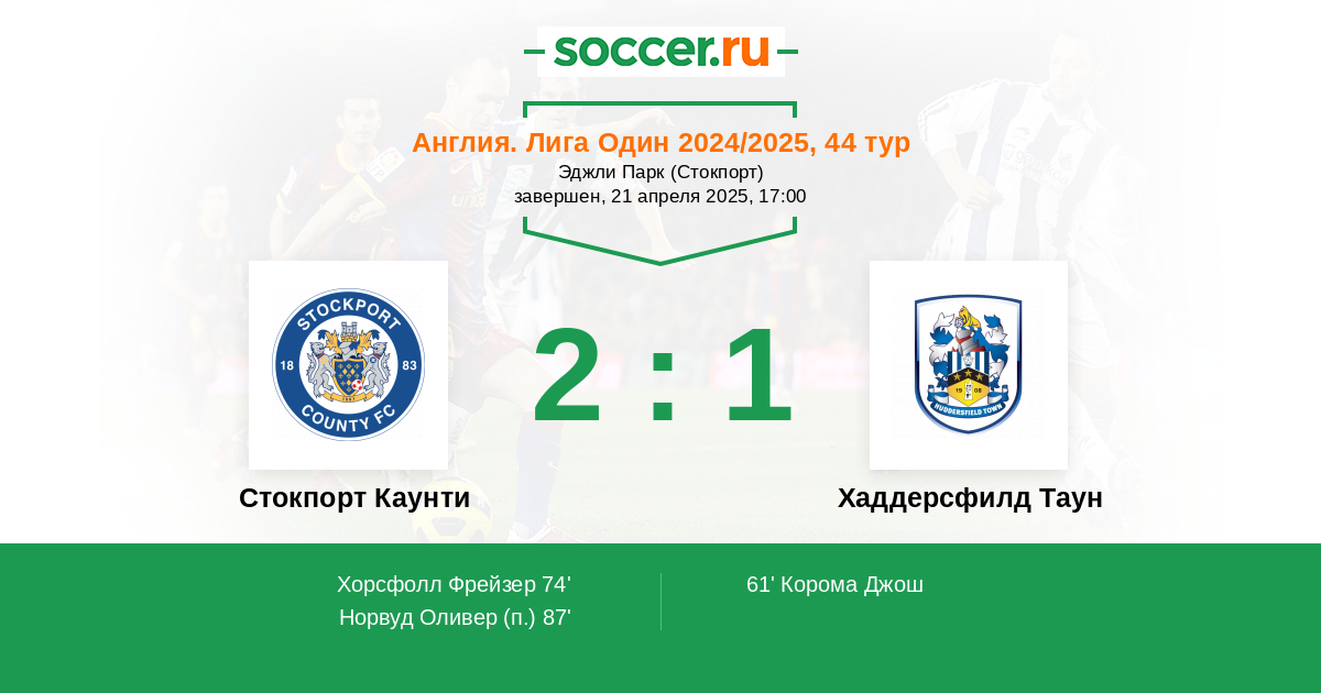 Протокол матча Стокпорт Каунти против Хаддерсфилд Таун