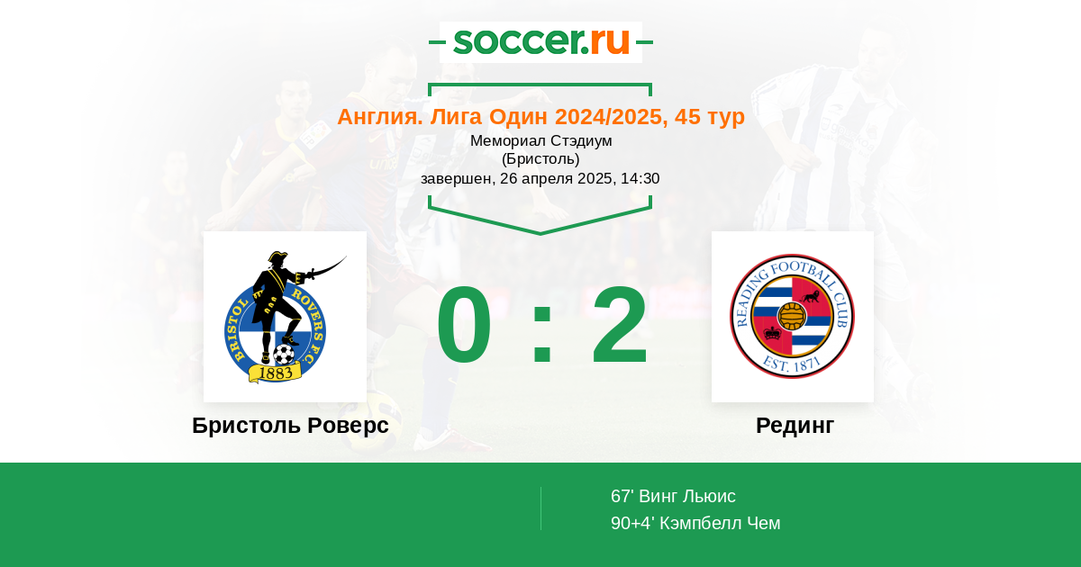 Протокол матча Бристоль Роверс против Рединг