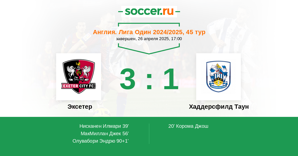 Протокол матча Эксетер против Хаддерсфилд Таун