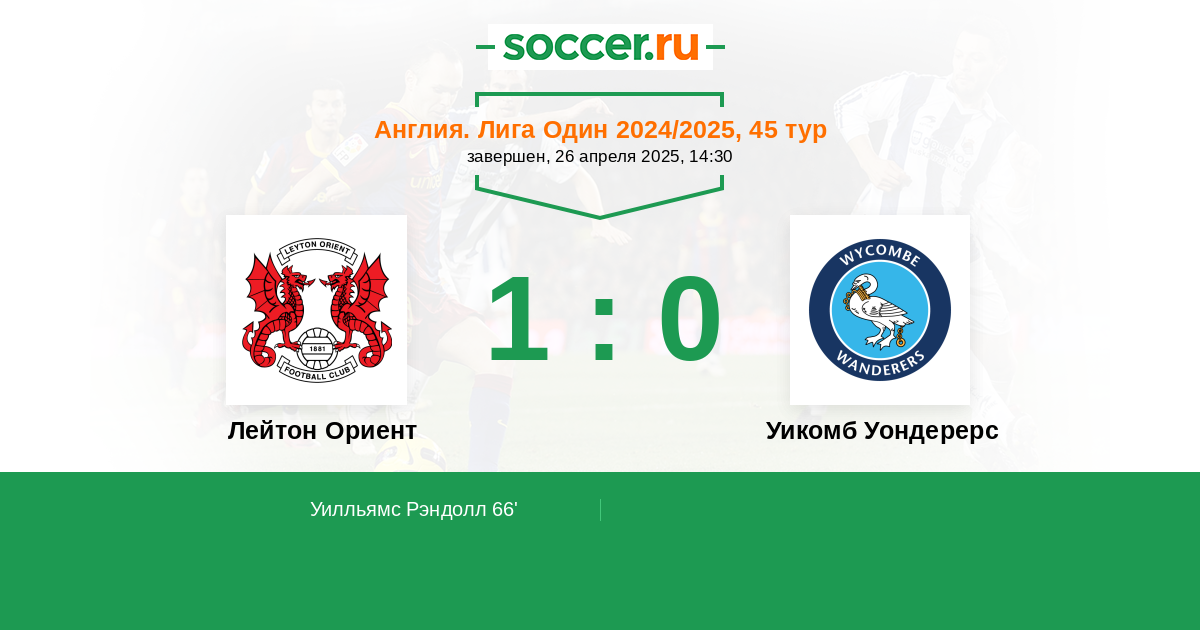 Протокол матча Лейтон Ориент против Уикомб Уондерерс