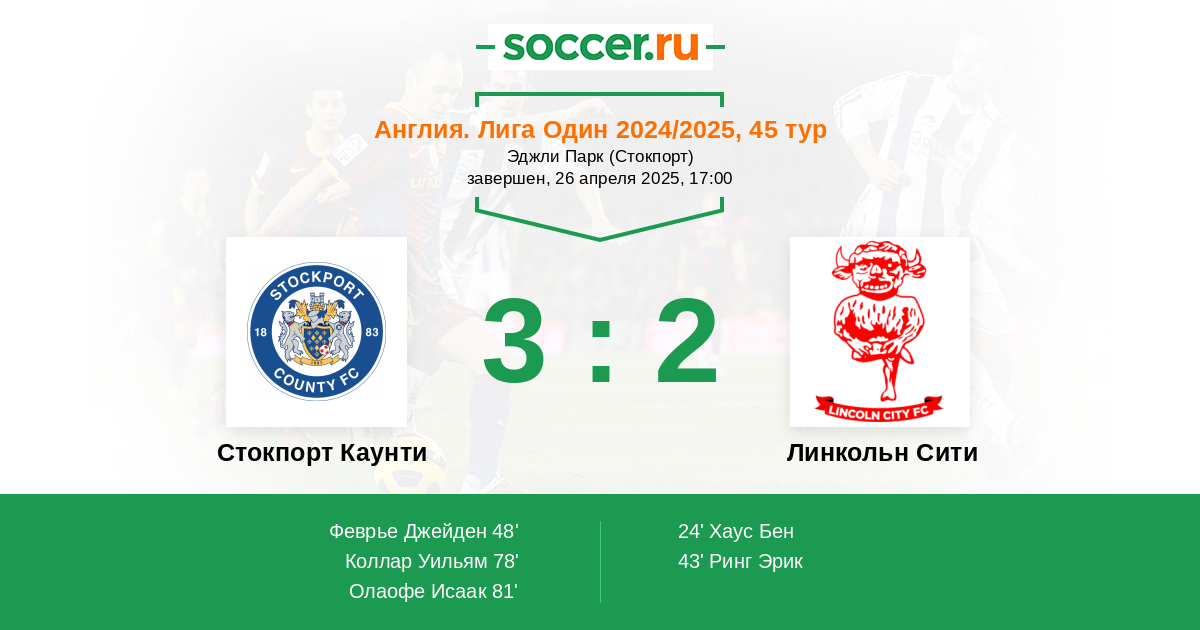 Протокол матча Стокпорт Каунти против Линкольн Сити