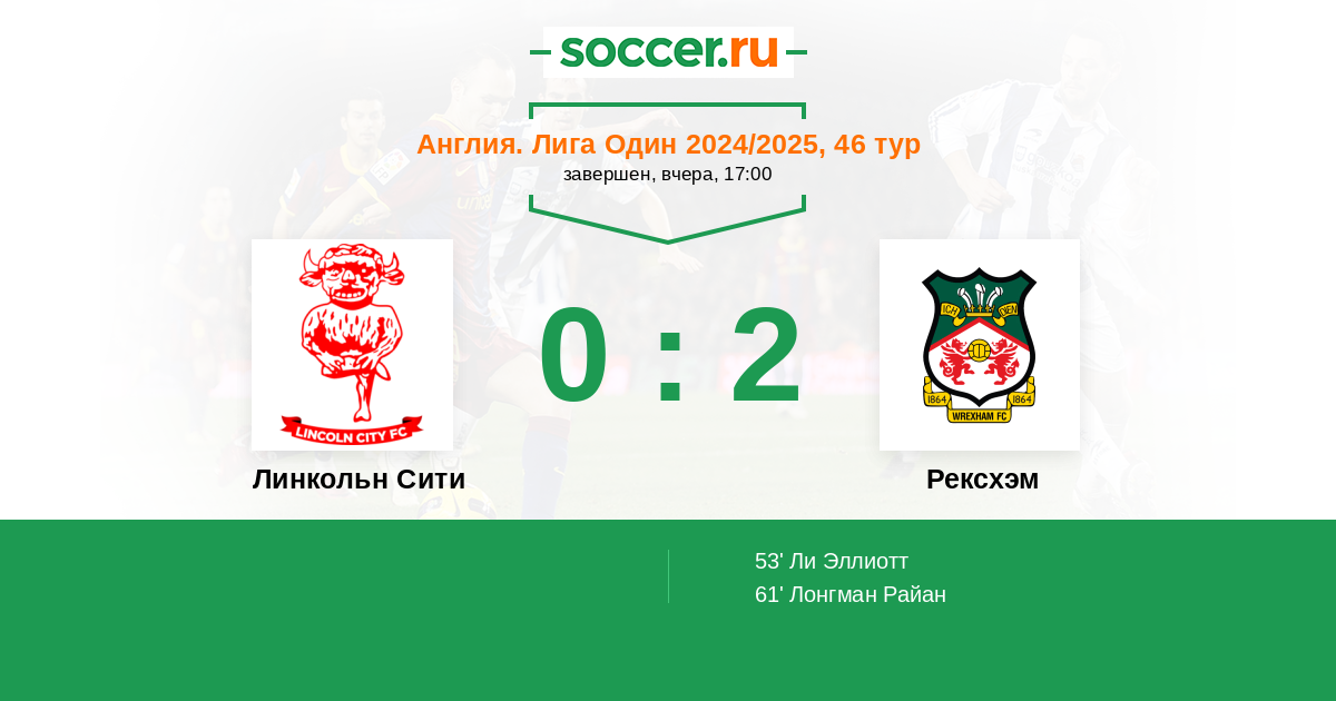53' (0:1) Ли Эллиотт (38) (Лонгман Райан (47))