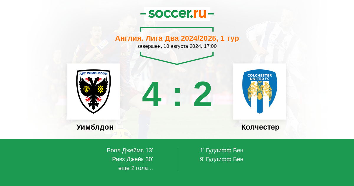 Протокол матча Уимблдон против Колчестер
