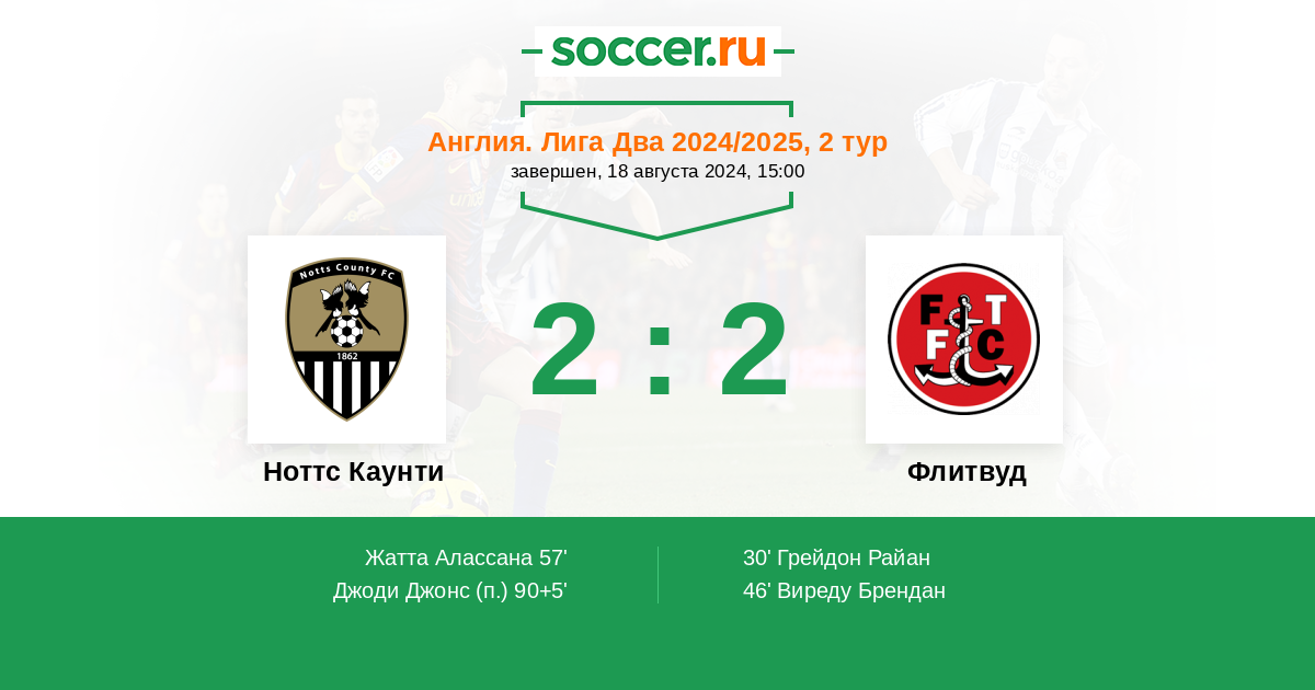 Протокол матча Ноттс Каунти против Флитвуд