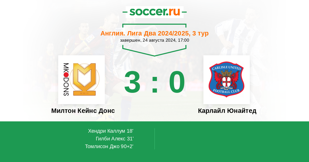 Протокол матча Милтон Кейнс Донс против Карлайл Юнайтед