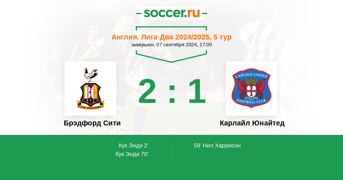 Протокол матча Брэдфорд Сити против Карлайл Юнайтед