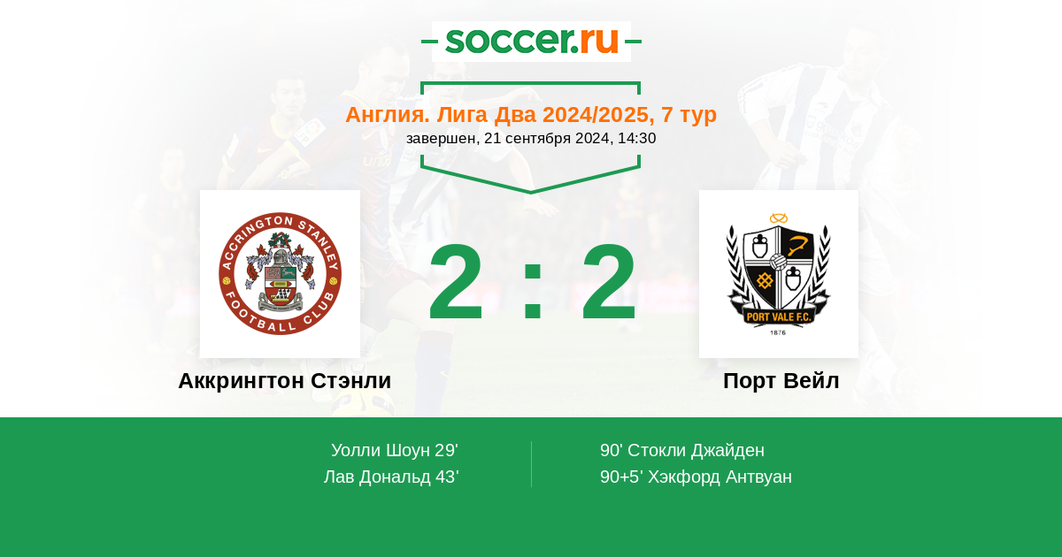 Протокол матча Аккрингтон Стэнли против Порт Вейл