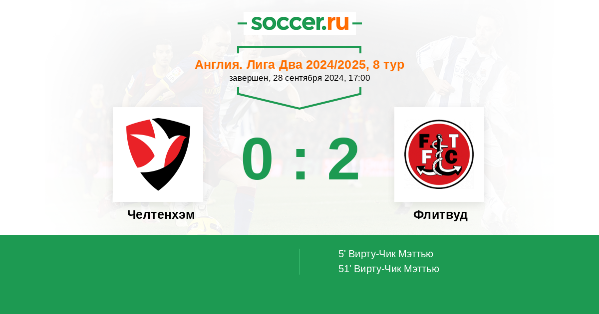 51' (0:2) Вирту-Чик Мэттью (8) (Бондс Эллиотт (6))