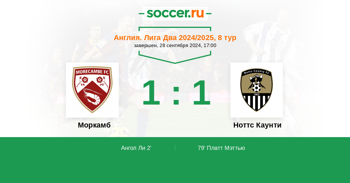 Протокол матча Моркамб против Ноттс Каунти