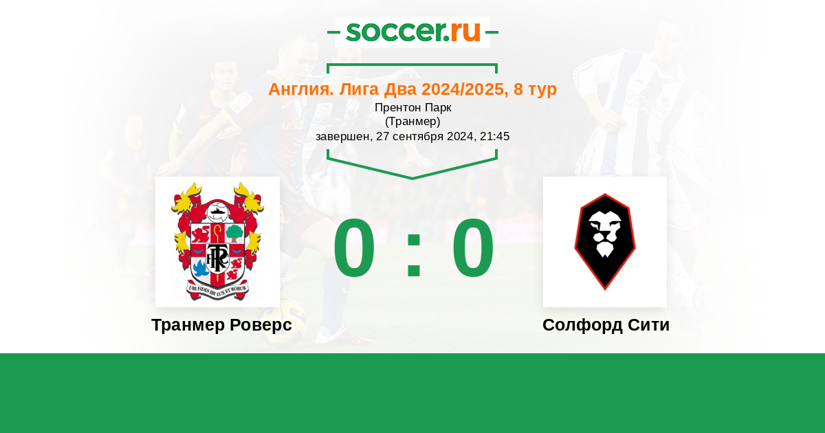 Протокол матча Транмер Роверс против Солфорд Сити