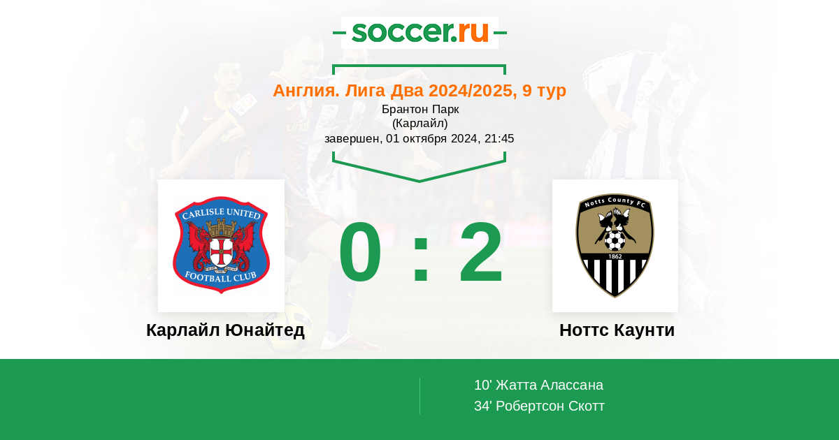 Протокол матча Карлайл Юнайтед против Ноттс Каунти