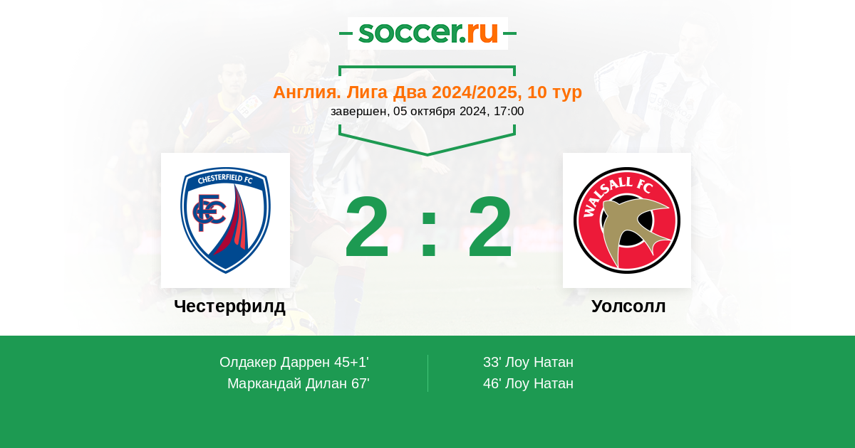 Протокол матча Честерфилд против Уолсолл