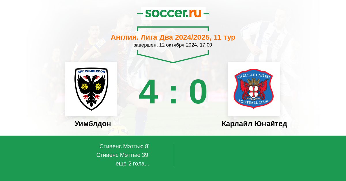 Протокол матча Уимблдон против Карлайл Юнайтед