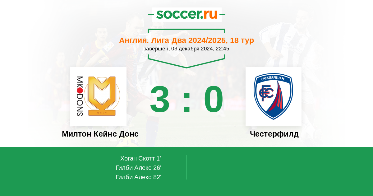 Протокол матча Милтон Кейнс Донс против Честерфилд