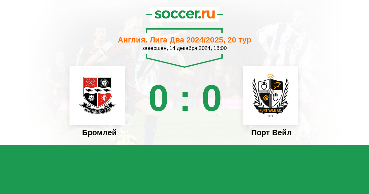 Протокол матча Бромлей против Порт Вейл
