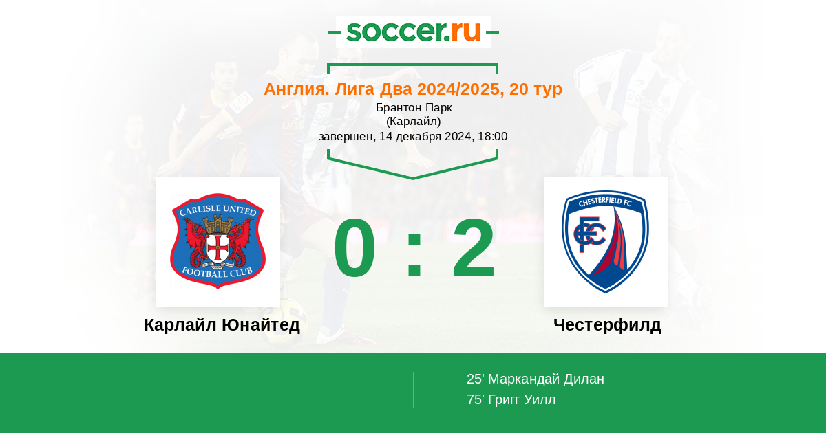 Протокол матча Карлайл Юнайтед против Честерфилд