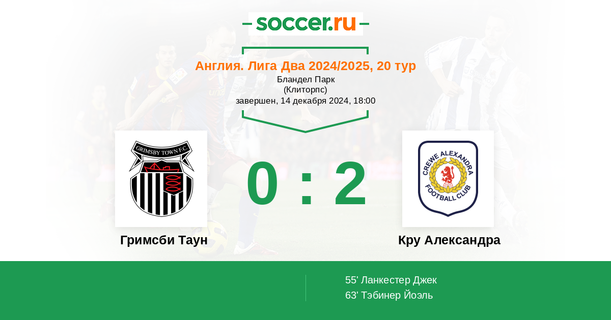 55' (0:1) Ланкестер Джек (14) (Сандерс Макс (6))