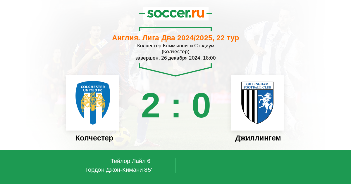 Протокол матча Колчестер против Джиллингем