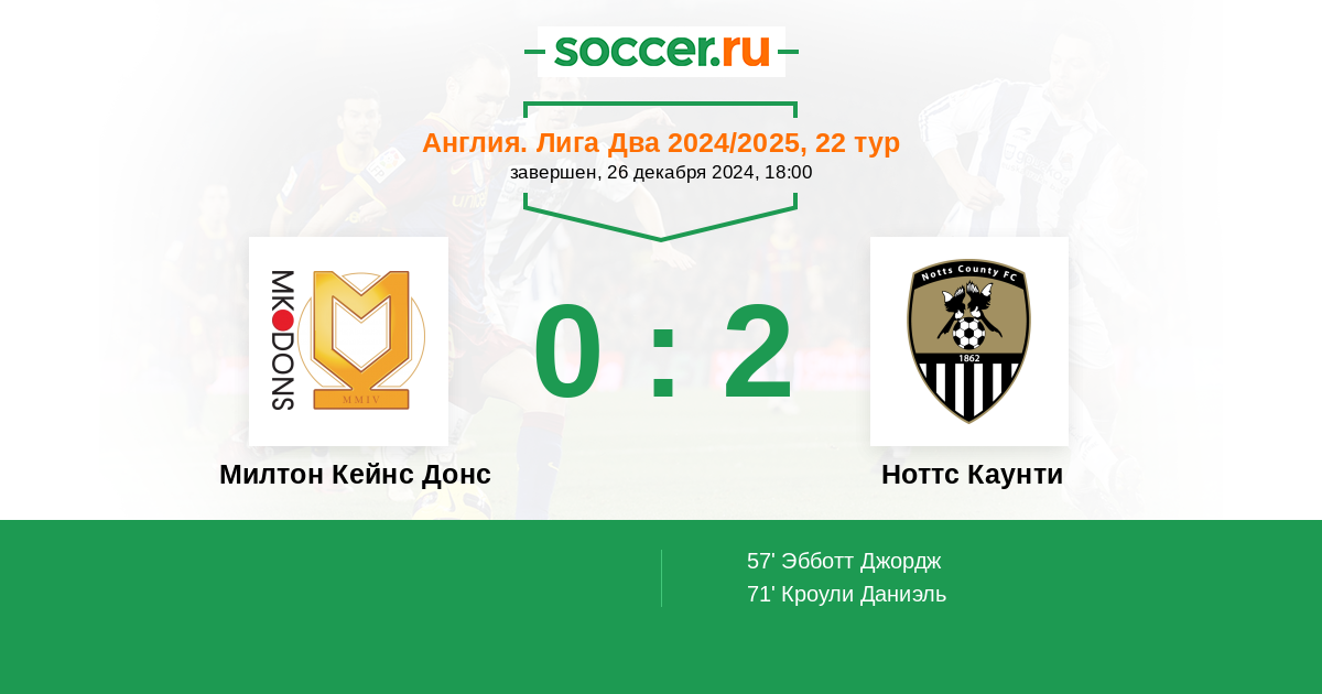 Протокол матча Милтон Кейнс Донс против Ноттс Каунти