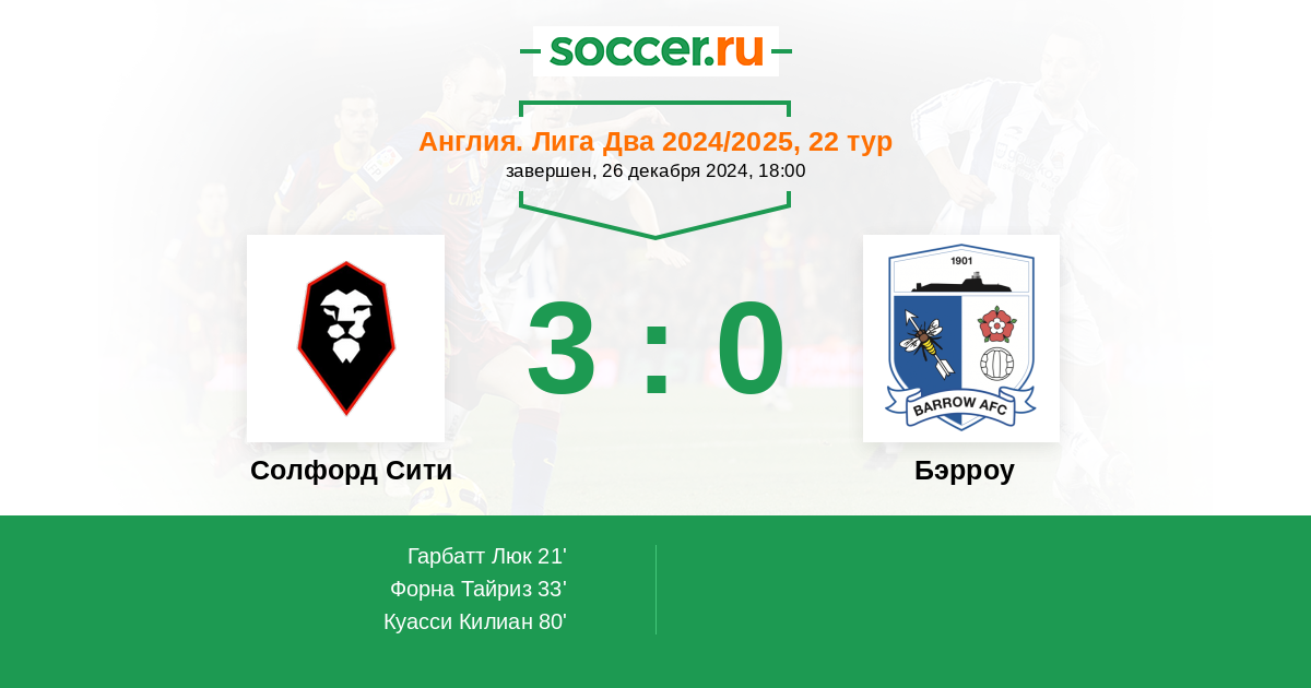 33' (2:0) Форна Тайриз (6) (Лунд Мэттью (8))