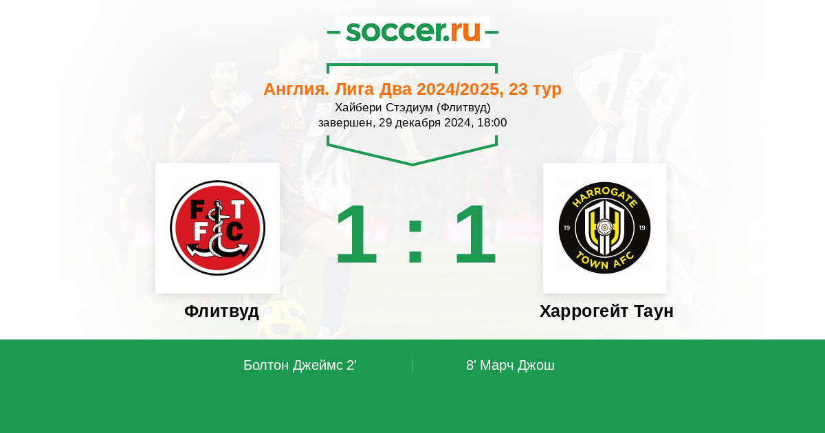 Протокол матча Флитвуд против Харрогейт Таун