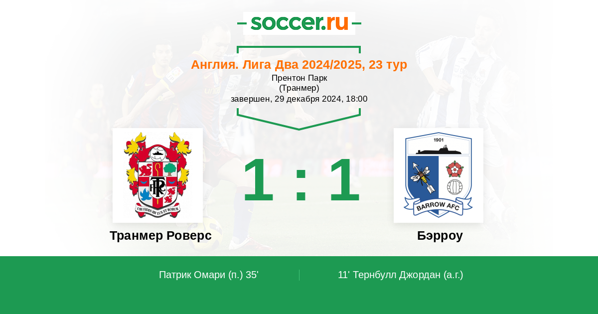 Протокол матча Транмер Роверс против Бэрроу