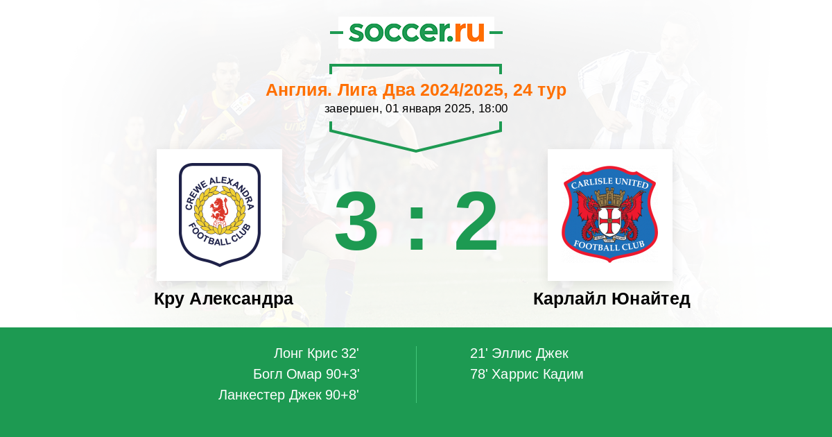 Протокол матча Кру Александра против Карлайл Юнайтед