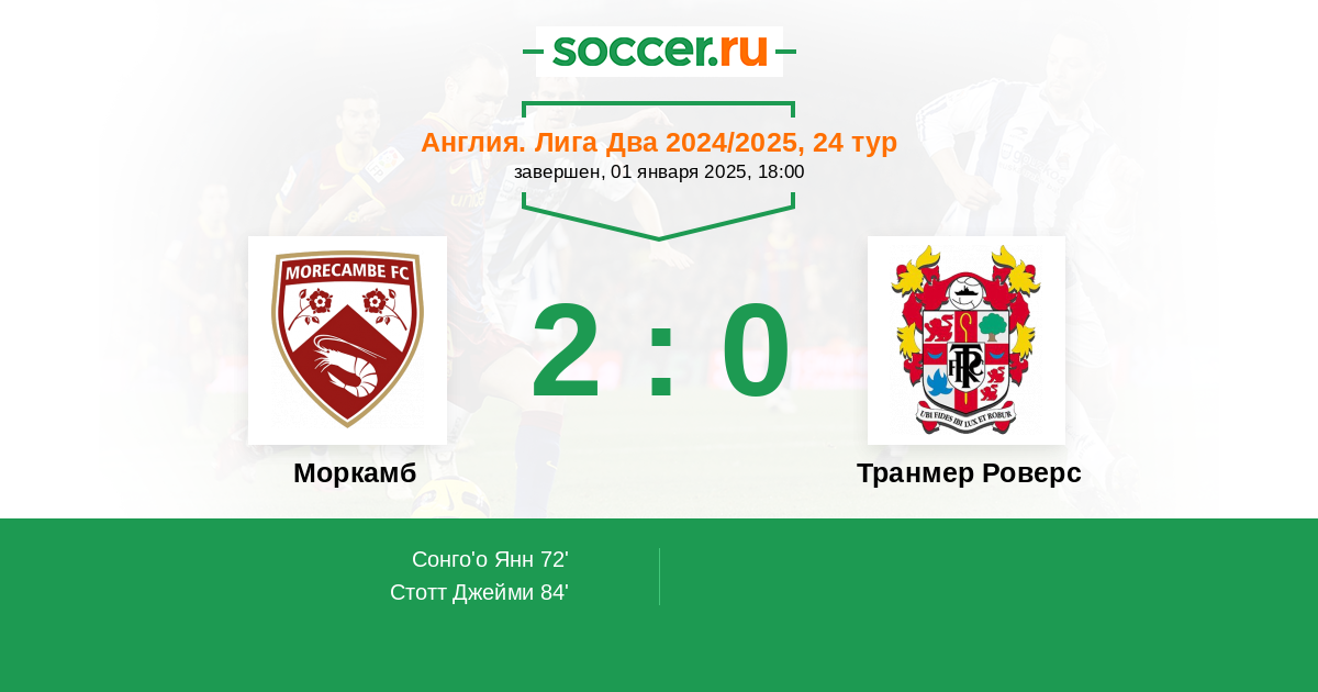 Протокол матча Моркамб против Транмер Роверс