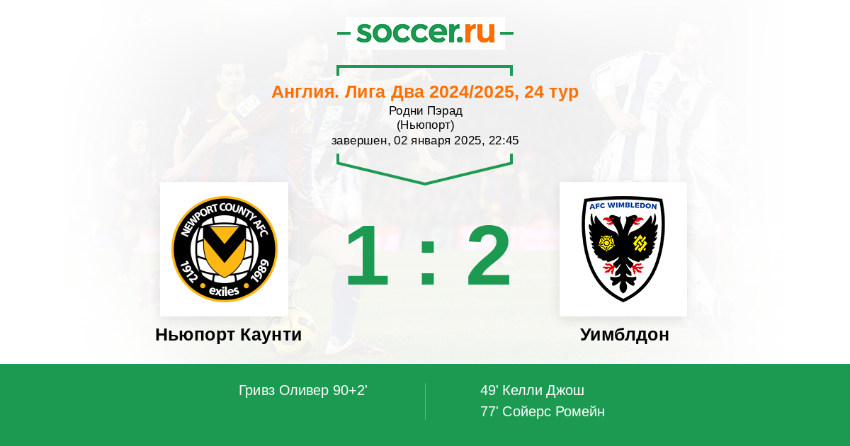 Протокол матча Ньюпорт Каунти против Уимблдон