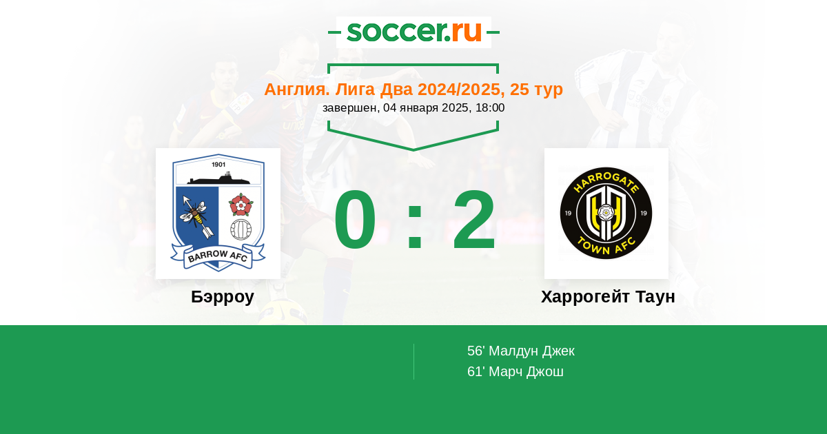 Протокол матча Бэрроу против Харрогейт Таун