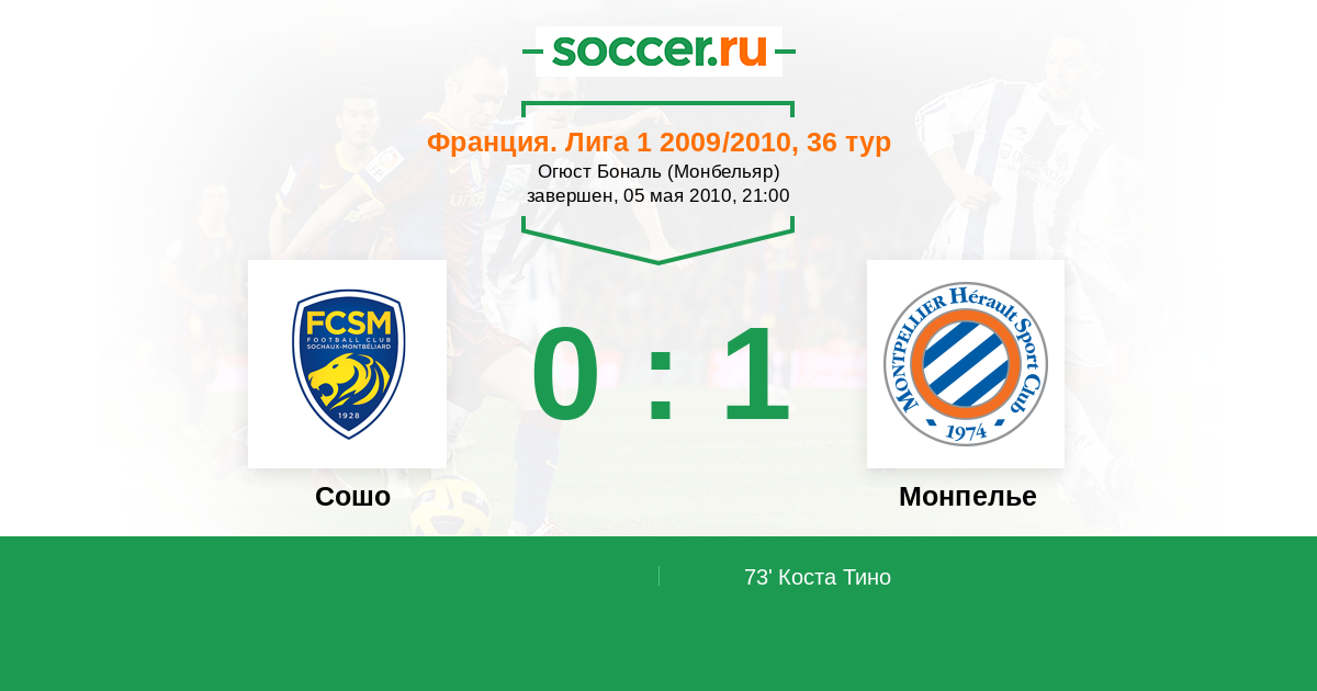 Протокол матча Сошо против Монпелье