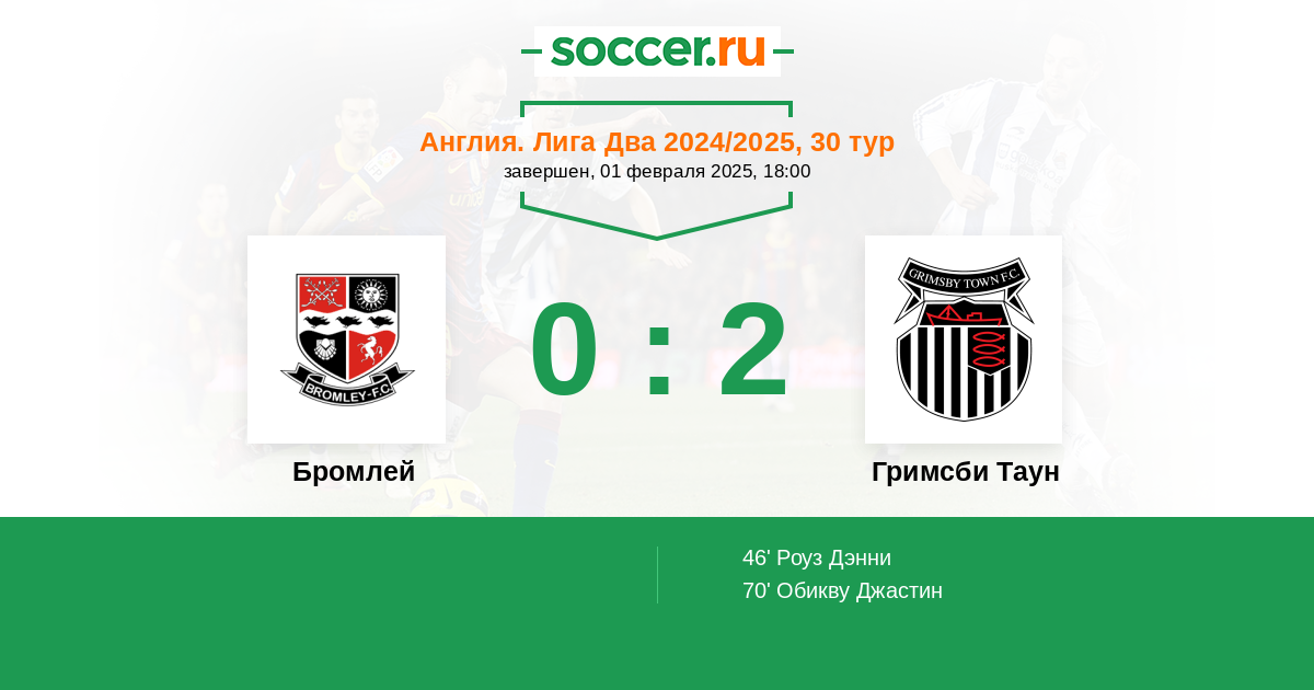 Протокол матча Бромлей против Гримсби Таун