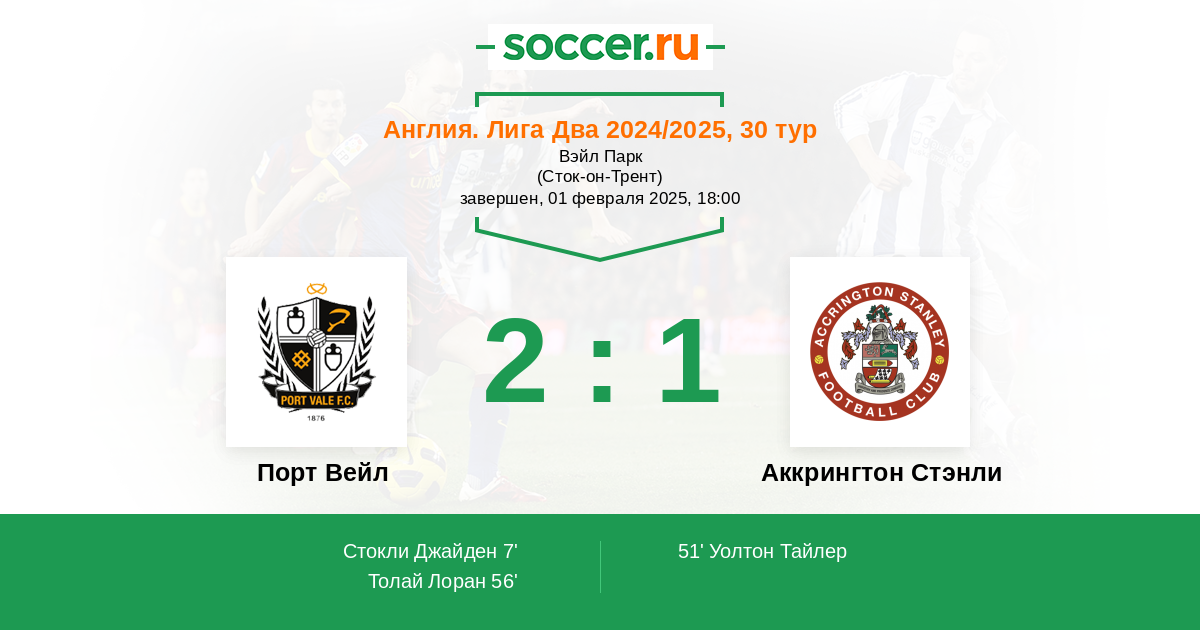 Протокол матча Порт Вейл против Аккрингтон Стэнли