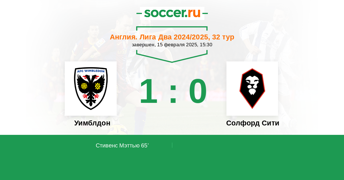 Протокол матча Уимблдон против Солфорд Сити