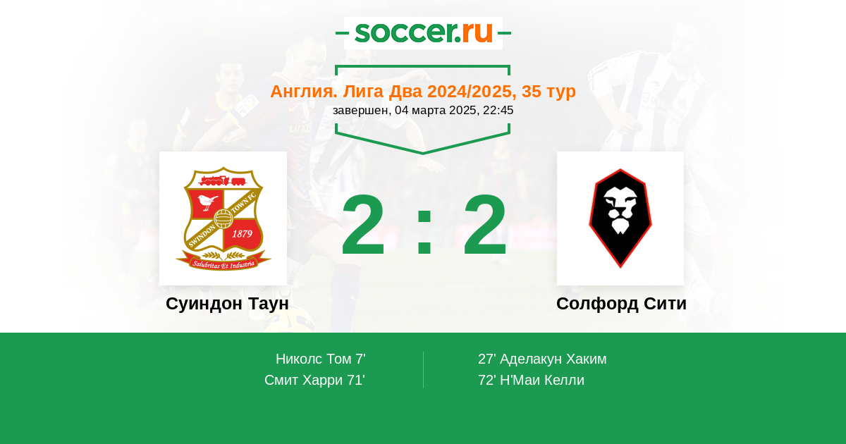Протокол матча Суиндон Таун против Солфорд Сити