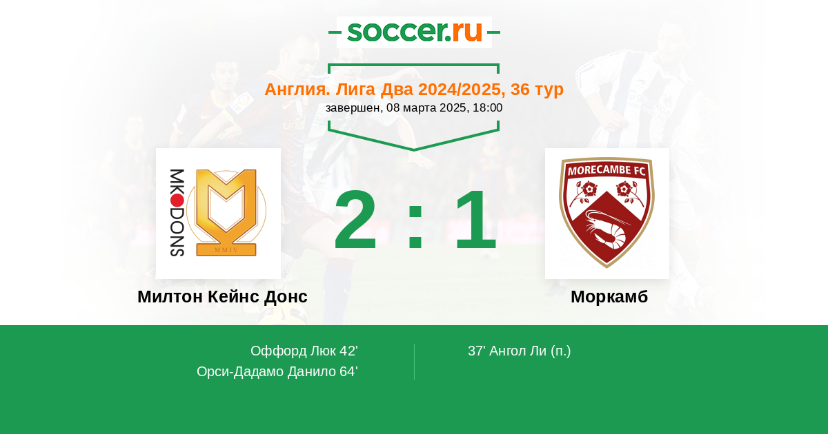 Протокол матча Милтон Кейнс Донс против Моркамб