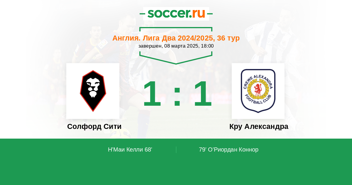 68' (1:0) Н'Маи Келли (10) (Вудберн Бенджамин (14))