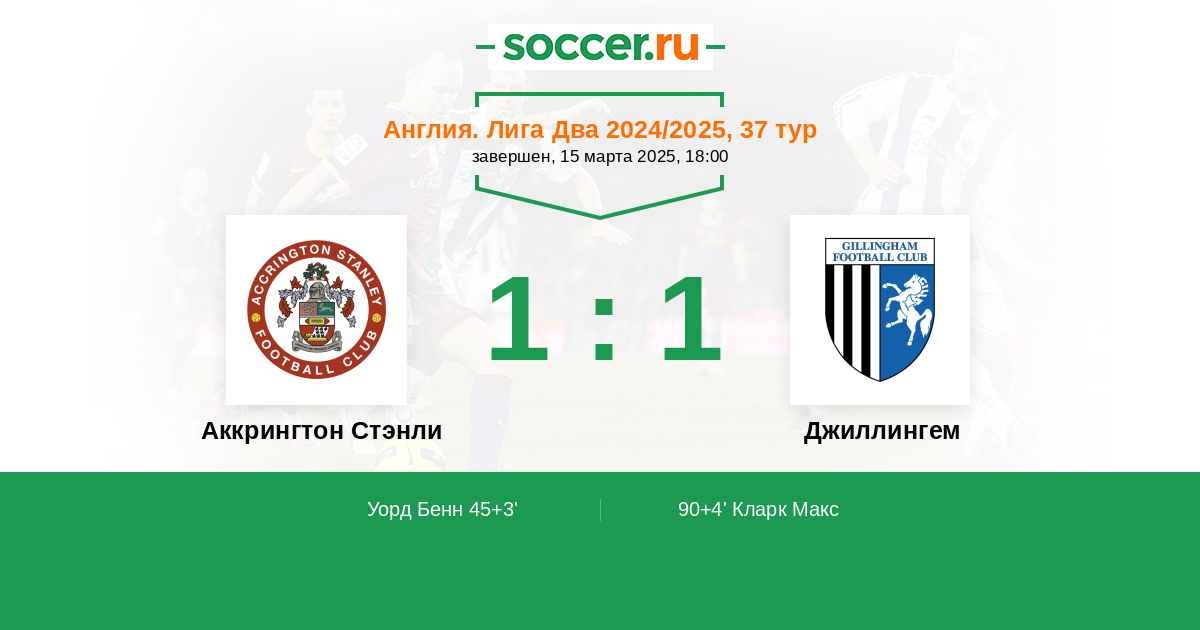 Протокол матча Аккрингтон Стэнли против Джиллингем