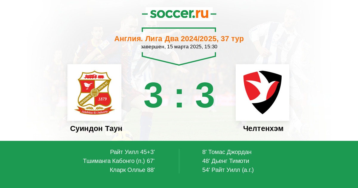Протокол матча Суиндон Таун против Челтенхэм