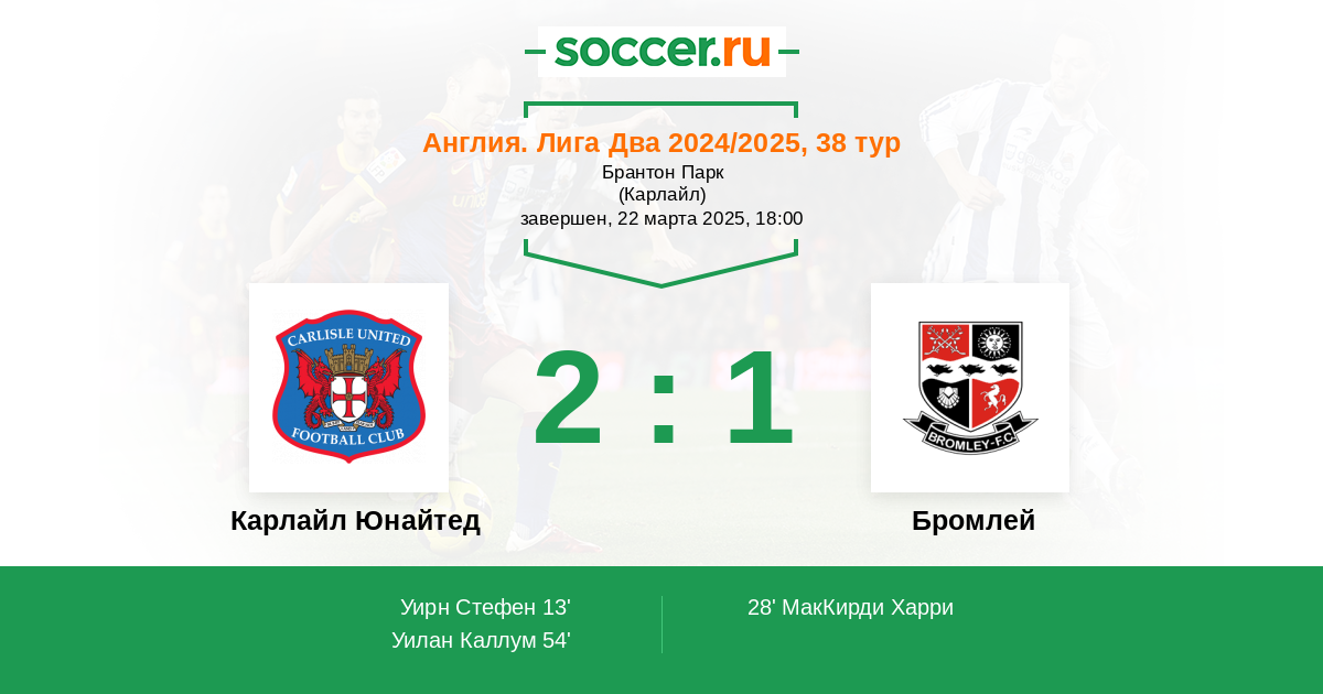 Протокол матча Карлайл Юнайтед против Бромлей