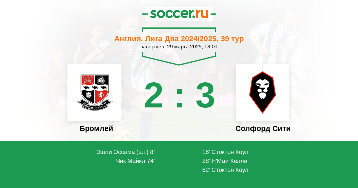 Протокол матча Бромлей против Солфорд Сити