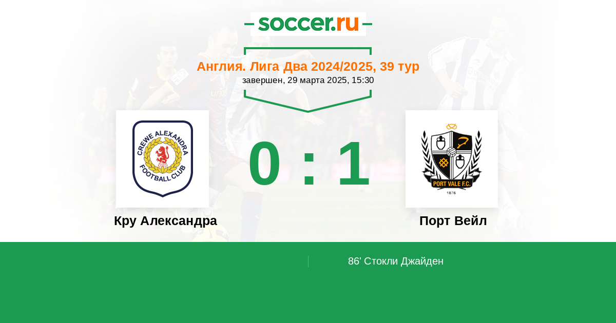 Протокол матча Кру Александра против Порт Вейл