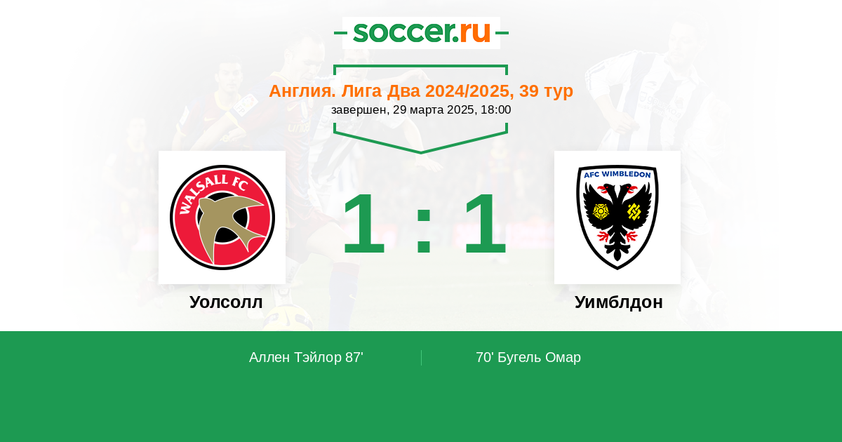 Протокол матча Уолсолл против Уимблдон