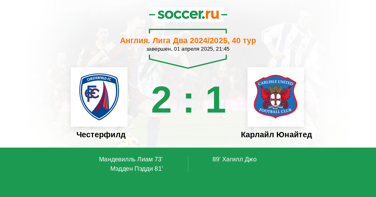Протокол матча Честерфилд против Карлайл Юнайтед