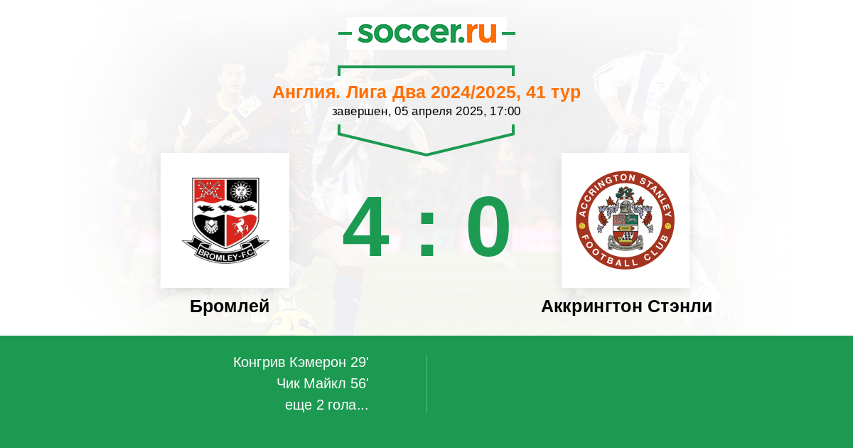 Протокол матча Бромлей против Аккрингтон Стэнли