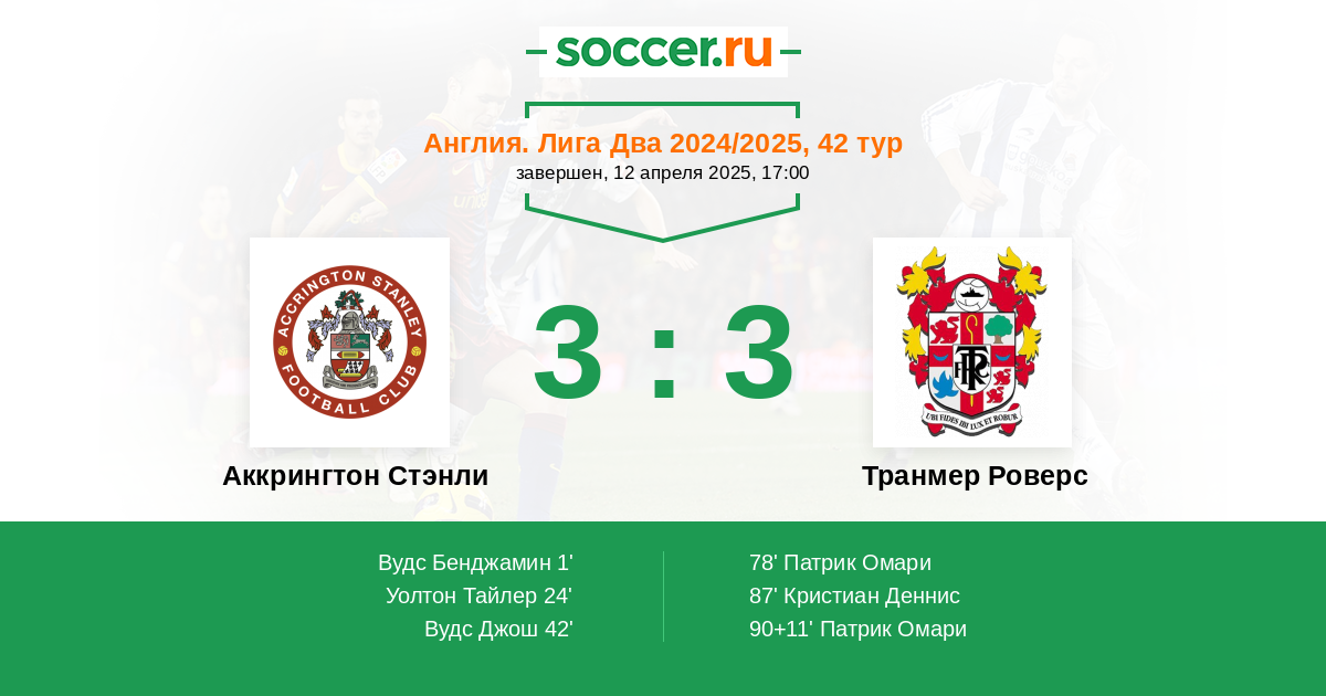 Протокол матча Аккрингтон Стэнли против Транмер Роверс