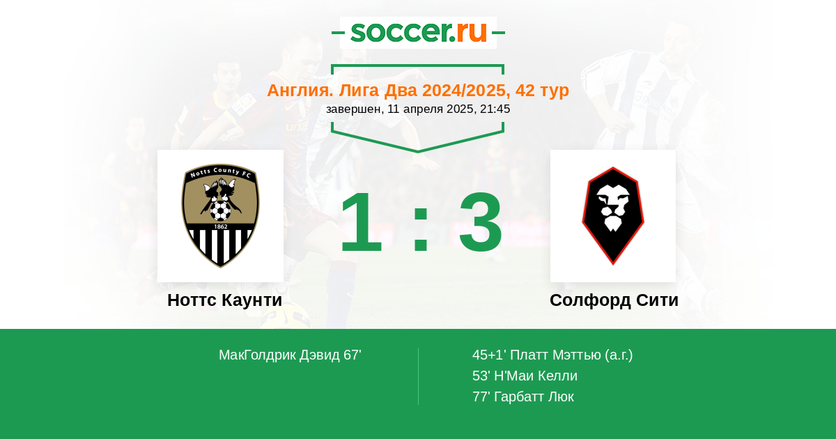 Протокол матча Ноттс Каунти против Солфорд Сити