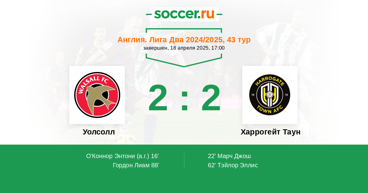 Протокол матча Уолсолл против Харрогейт Таун